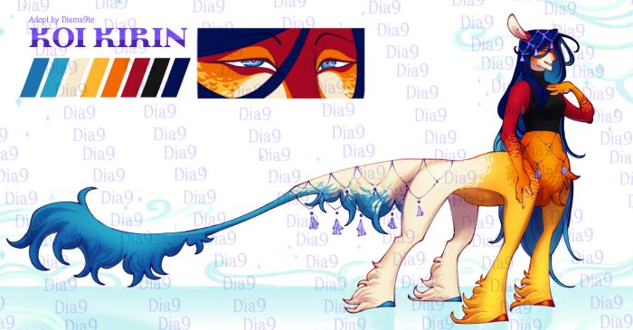 ๐ Sb: 20$ ๐ Mi: 2$ ๐ Ab: 100$ ๐ For bidding Ab you'll get commertial use permit and additional portrait of the character โธปRULES โธป - No refunds - Serious bids only. - You will receive the PNG file full size and no background ver., no watermarks, no rules, no development ๐ Payment via Hipolink(PayPal) or Boosty(bank cards) after 48h Auctions are also held at : https://toyhou.se/38696436.koi-kirin-adopt-open https://www.furaffinity.net/view/64589400/#cid:191087311 My contact info : Discord @diama9te Telegram @diama9te
