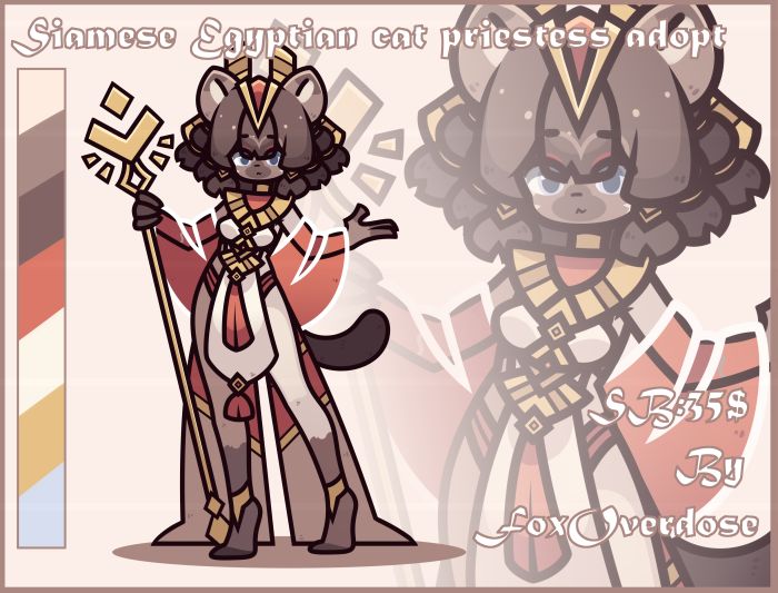 https://x.com/OverD380874 https://www.furaffinity.net/user/foxoverdose Siamese Egyptian cat priestess|Adopt auction