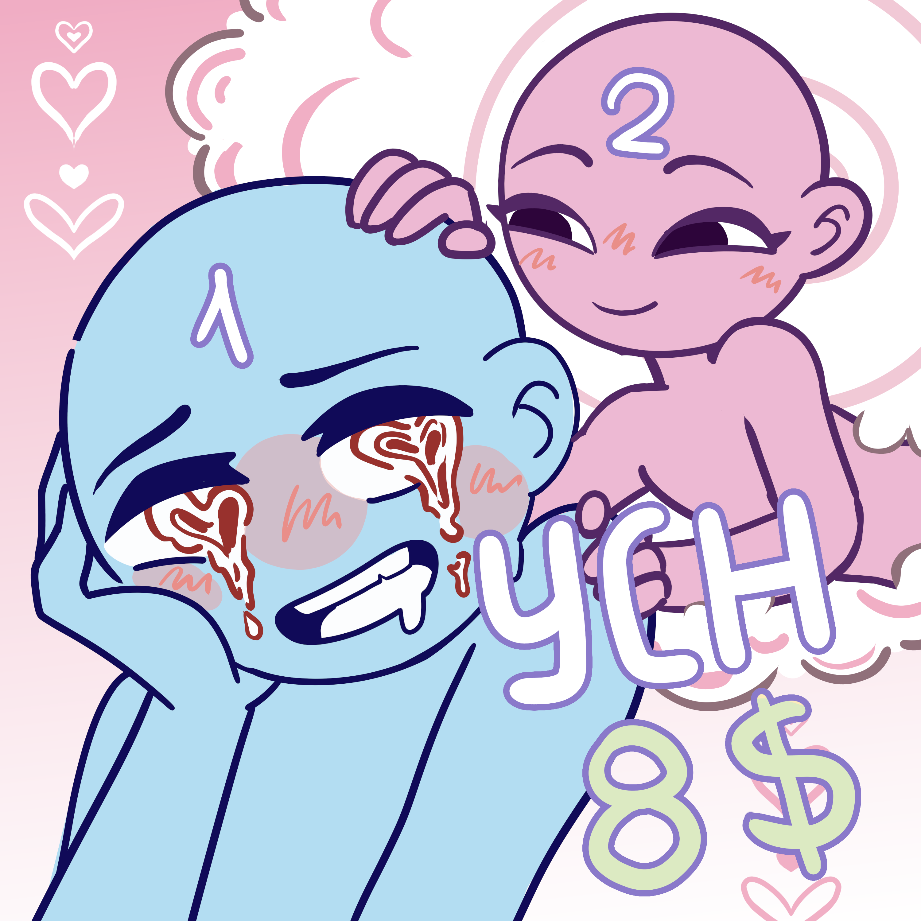 SB: 8 $ Min: 1 $ 馃挏The deadline is 1-2 weeks 馃挏YOU CAN: change the emotion and race of the character. 馃挏The price may increase by 5-10$ depending on the complexity of the characters. 馃挏Payment is only BOOSTY (no refund). 馃挏Payment after the sketch. 馃挏(I can post this in a portfolio with a watermark) Boosty: https://boosty.to/cioccolata