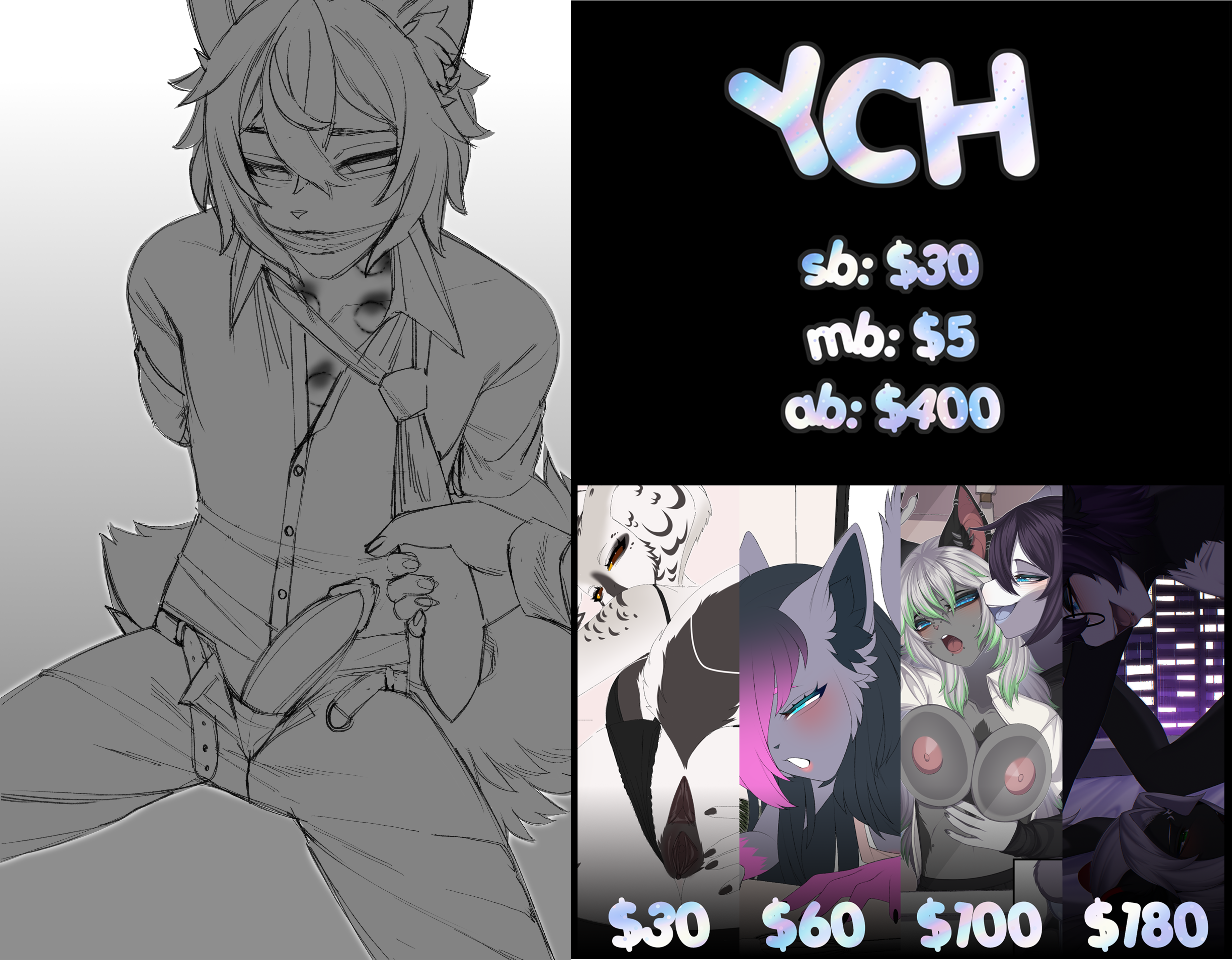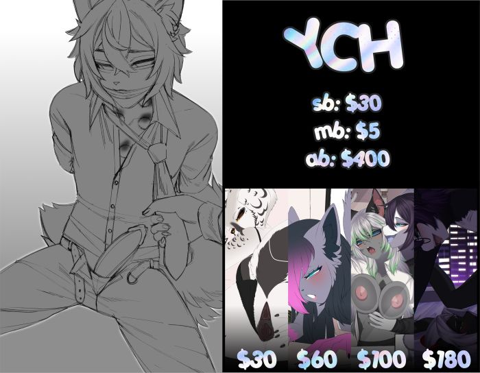 Payment via boosty / hipolink | payments must be sent within 24 hour after the auction ends ANY gender | ANY body type | ANY species | pose can be slightly changed 鉃栤灃鉃栤灃鉃栤灃鉃栤灃鉃栤灃鉃栤灃鉃栤灃鉃栤灃鉃栤灃鉃栤灃鉃栤灃 馃挅 sb: $30 馃挅 mb: $5 馃挅 ab: $400 馃拰What you can get 馃拰 馃挅 sb - colour sketch example: https://portfolio.commishes.com/upload/show/1NHT0/ 馃挅 $60 - flat colours example: https://portfolio.commishes.com/upload/show/1NVF6/ 馃挅 $100- cellshade example: https://portfolio.commishes.com/upload/show/1JGUI/ 馃挅 $180 - fullrendered art + bg example: https://portfolio.commishes.com/upload/show/1O2KO/ 馃挅 ab - sex scene with femdom (can be another male) (alt expression, cum, x-ray) 鉃栤灃鉃栤灃鉃栤灃鉃栤灃鉃栤灃鉃栤灃鉃栤灃鉃栤灃鉃栤灃鉃栤灃鉃栤灃 鉂昑OS Turnadround time 1 - 60 days You can't ask for a refund Payment plan is okay also can be flexible (from $200) I won鈥檛 start working until full prepayment is made Private commissions is okay 鉃栤灃鉃栤灃鉃栤灃鉃栤灃鉃栤灃鉃栤灃鉃栤灃鉃栤灃鉃栤灃鉃栤灃鉃栤灃 馃挅 Reviews: https://loot.commishes.com/user/profile/Tenshii/
