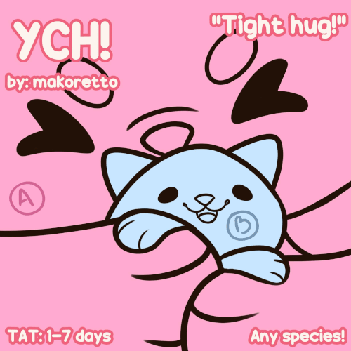 Tight hug YCH ✨RULES: ✨TAT 1-7 days ✨Any species! ✨100% payment (Paypal or Kofi) Here my loot for references! https://loot.commishes.com/user/profile/Makoretto