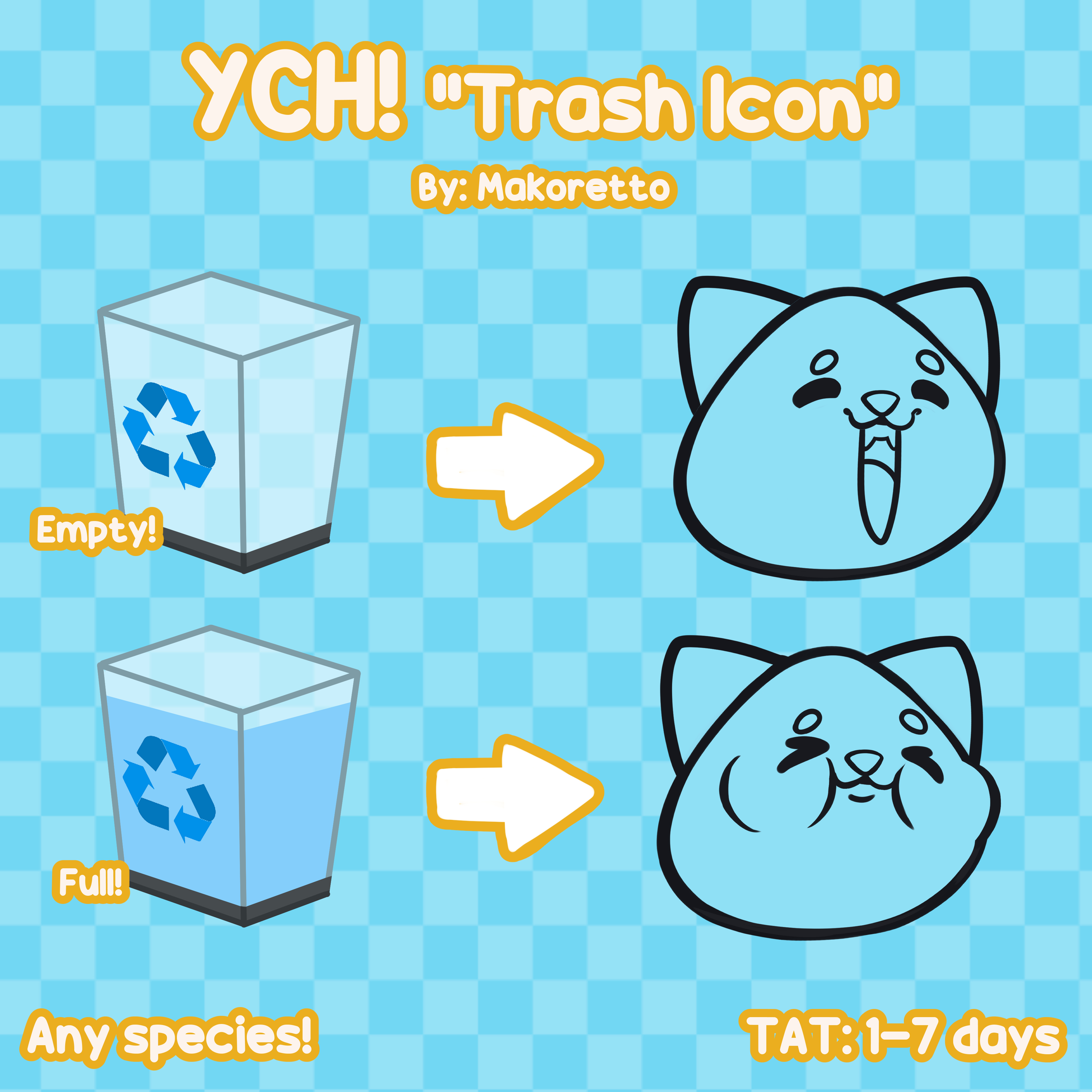 ✨RULES ✨TAT 1-7 days. ✨Any species! ✨100% payment (PayPal or Kofi). ✨PROCESS✨ -You will receive both versions of the icon (empty and full recycle bin) in their compatible format (.ico) and in their corresponding size (256x256). (If you're using an operating system other than Windows, let me know and I'll export it in the format you need!) -If you don't know how to change your desktop icon, I can help u! Here's my loot for reference! https://loot.commishes.com/user/profile/Makoretto