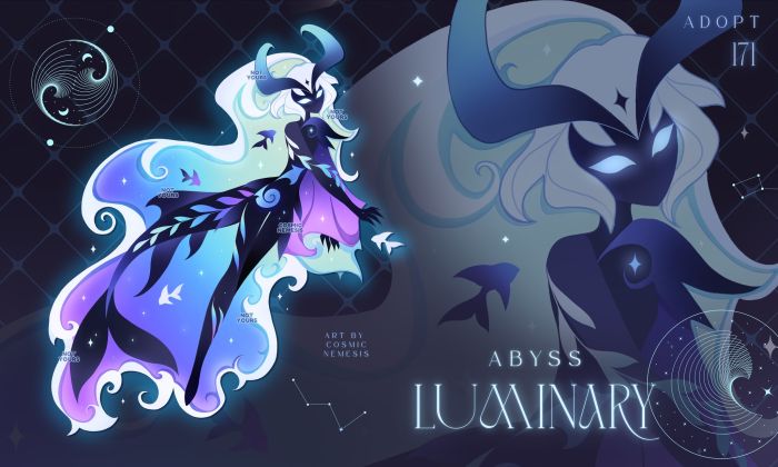 Only Paypal ✦ SB: 40 usd ✦ MI: 5 usd ✦ AB: 170 usd ( commercial use ) ★彡 RULES ⬥ 𝗣𝗮𝘆𝗺𝗲𝗻𝘁 𝗺𝘂𝘀𝘁 𝗯𝗲 𝘀𝗲𝗻𝘁 𝘄𝗶𝘁𝗵𝗶𝗻 𝟮𝟰 𝗵𝗼𝘂𝗿𝘀 ⬥The adopt is delivered to the owner without a watermark and with a color palette. ⬥ Please do not delete or withdraw offers ⬥ You can change the design as you want ⬥ credit me for the art and design ⬥ no refunds ★彡 FULL TOS ★彡 https://cosmicnemesis.carrd.co/#adopts ✦ th https://toyhou.se/38816050.abyss-luminary-adopt ✦ DA https://www.deviantart.com/cosmic-nemesis/art/Abyss-Luminary-Open-ADOPT-1321453966 ✦ blsky https://bsky.app/profile/cosmic-nemesis.bsky.social/post/3mjhkrpfkx22i ✦ X https://x.com/i/status/2044083738485698815