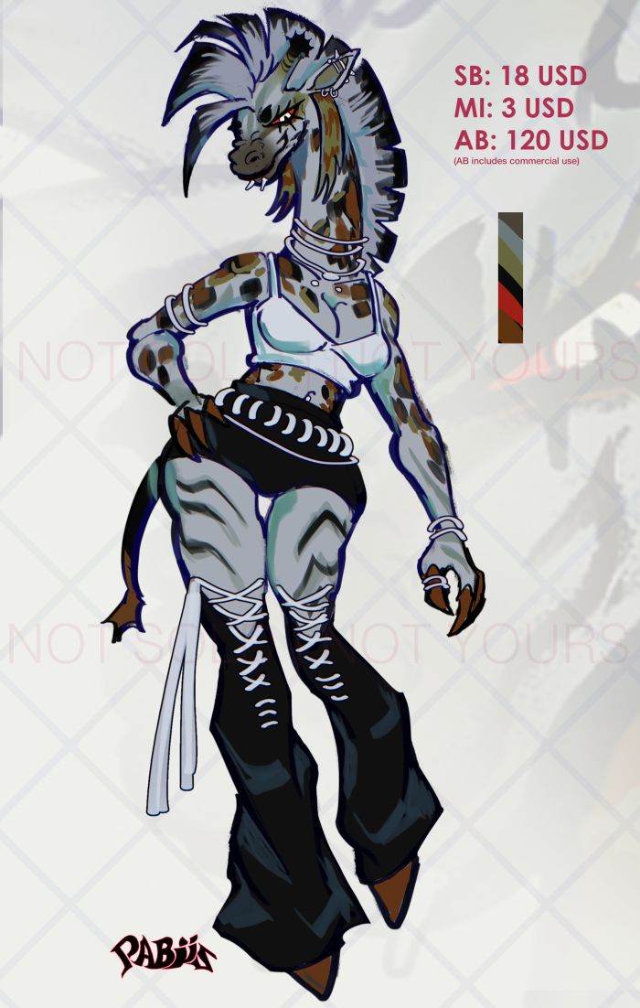 SB: 18 USD MI: 3 USD AB: 120 USD Payment via: PayPal (invoice) - AB includes commercial use - Can transfer adopt via ToyHouse, Gmail, or any social media of your preference. - Buyer obtains HQ version and without background. Serious offers only. The auction winner has 24 hours to respond and complete the payment. Failure to do so will result in being blacklisted and the adoptable being relisted. Design TOS and Art examples: pabiis.carrd.co/ # THIS AUCTION IS CROSSPOSTED, ANY BID MADE BY ME IS AN EXTERNAL BID Auctions links: FB: https://www.facebook.com/pabiis.pavooss/ TH: https://toyhou.se/Pabiis/characters/folder:1602324 DA: https://www.deviantart.com/pabiis