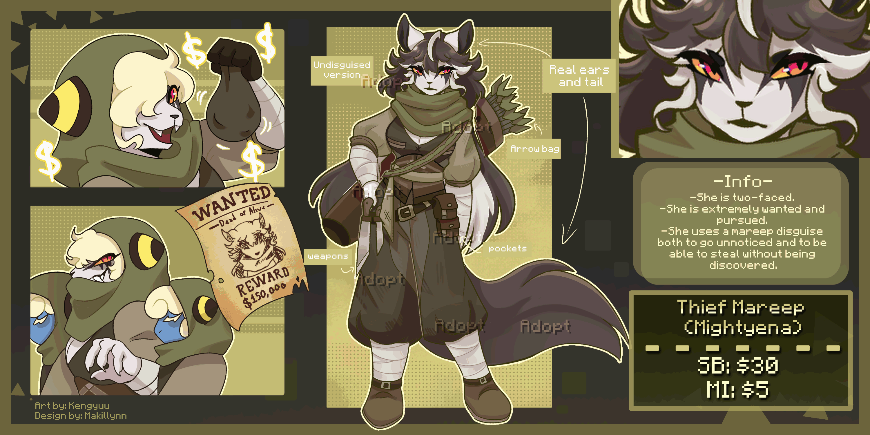 Attention!! I don't usually contact clients on Discord; I try to contact them initially through the CRM. If you receive a message from me that isn't from the user >K3ngyuu<, please block and report the user Please make sure to check the account creation date/banner/username. Take care of yourself! Collab with: Mak1lynn (Bluesky) ►SB: $30 ►MI: $5 ►AB: $320 -$55 get a chibi icon -$80 get a back reference + 1 chibi icon + design change allowed (Optional: No clothes version [SFW] ) -Above of $130 gets all above + commercial use -$160 gets all above + custom full body extra art +$200 gets an extra simple gif animation —Rules— ⌗Payment to be made in 24h if there are no warnings and a response once per day, second higher bid will be the owner or return to auction ⌗No holds. If the bid is over $100, payment plan can be discussed how flexible the payment plan can be. ⌗Serius bids only and >>make sure you have enough money before bidding<< ⌗No refunds after payment. ⌗Any questions DM in Bluesky or Discord >> Discord: k3ngyuu ⌗Resell only for AB, but you can gift and trade ⌗After payment full image size without watermark and PSD files will be sent via email ⌗payment method: PayPal or Ko-fi ►Paypal Email: [email protected] ►Ko-fi: https://ko-fi.com/kengyuu ⌗Credit me, please —————————————— Cross posted: Toy House: https://toyhou.se/38891183.open-thief-mightyena Fur Affinity: https://www.furaffinity.net/view/64716207/ —————————————— ►Previous costumers: https://loot.commishes.com/testimonial/on/Kengyuu/ ►My Carrd https://kengyuu.carrd.co/