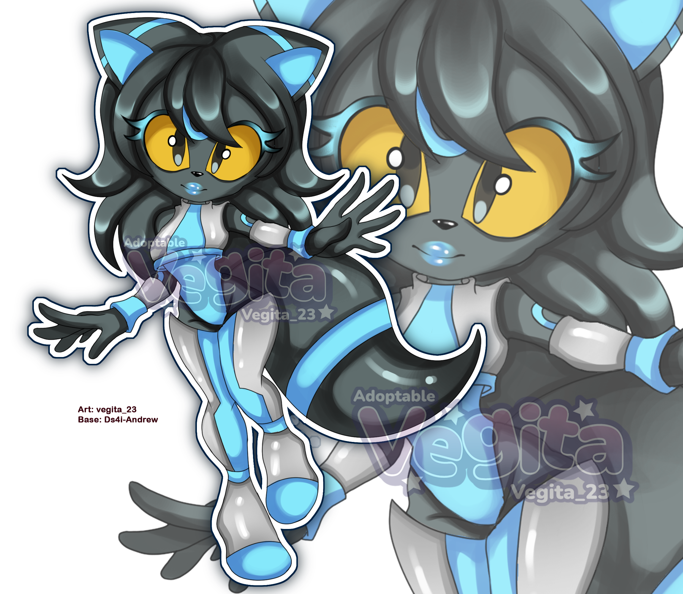 SB: 15 USD MB: 2 USD AB: 300 USD levels: 100 USD: extra art half body 200 USD: extra art helf body + full body 300 USD: extra art half body + full body + reference sheet crosspost: - NO REFUNDS - ONLY PAYPAL and KOFI *The winner will have the photos separated without watermark and with higher quality. *You choose: name, backstory, personality, specie, etc *You'll get the full rights to this adoptable. *You gain complete rights to the character for both personal use *If the auction reaches more than 100USD, there may be a payment plan. (an initial payment is required or there may be a payment date, if passing the date there is no response the adoptable will return to be sold) twitter: https://twitter.com/Vegita_23 Instagram: https://www.instagram.com/vegita_23/ ToyHouse: https://toyhou.se/vegita_23 vgen: https://vgen.co/Vegita_23 Desing and art: me Base: https://ko-fi.com/s/c3aefaf462