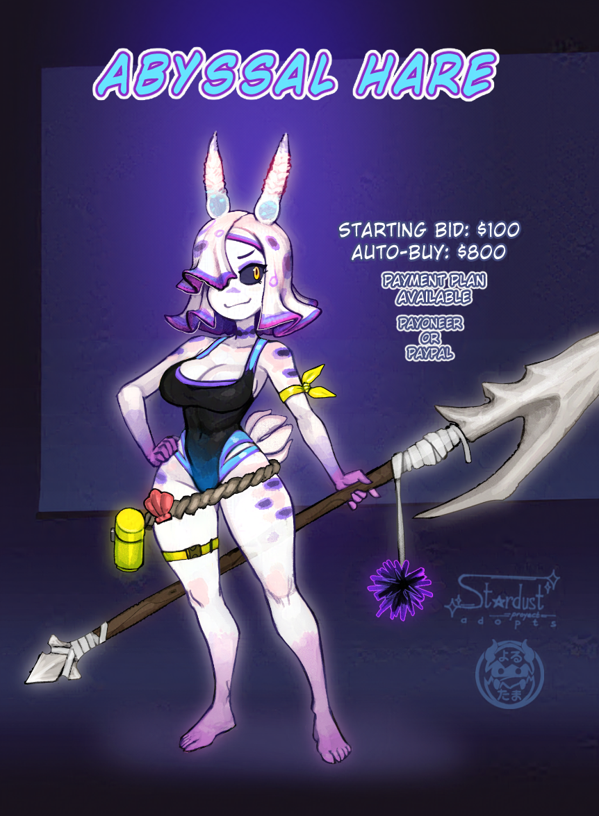 The Artist and Socials https://bsky.app/profile/yorutama.bsky.social x.com/StartdustV https://bsky.app/profile/stardustv.bsky.social To prevent sniping, bids near the end of the auction will extend after the most recent bid on that auction. Place your bids below, as replies to the relevant comment. Do not retract or delete bids under any circumstances. Doing so will result in a ban from all future auctions. Do not bid unless you are certain you want the character and will be able to afford to pay the amount you bid. If, despite all of that, you absolutely need to delete or remove a bid, please leave the bid intact and post a second comment explaining the situation. I'll sort things out from there. Because of the current situation the world is in, I want to state SPECIFICALLY that you are NOT allowed to use these designs in any blockchain (NFT and such) or AI training-related activities The starting bid is $100 Minimum bid increment is $10 AutoBuy is $800- Please include the number in an AB bid to confirm that you've actually read this. Payoneer and PayPal are available with a partial payment option
